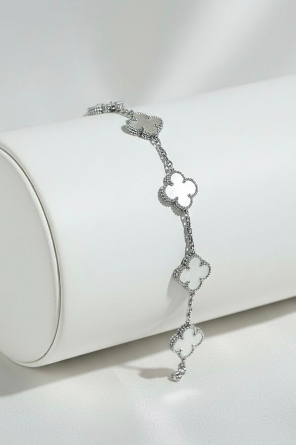 DIVA- Mother Of Pearl Silver Clover Bracelet