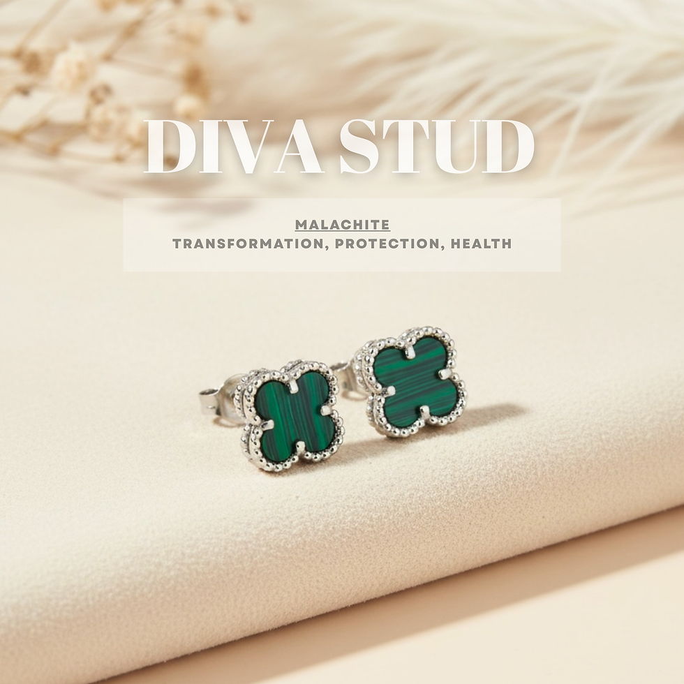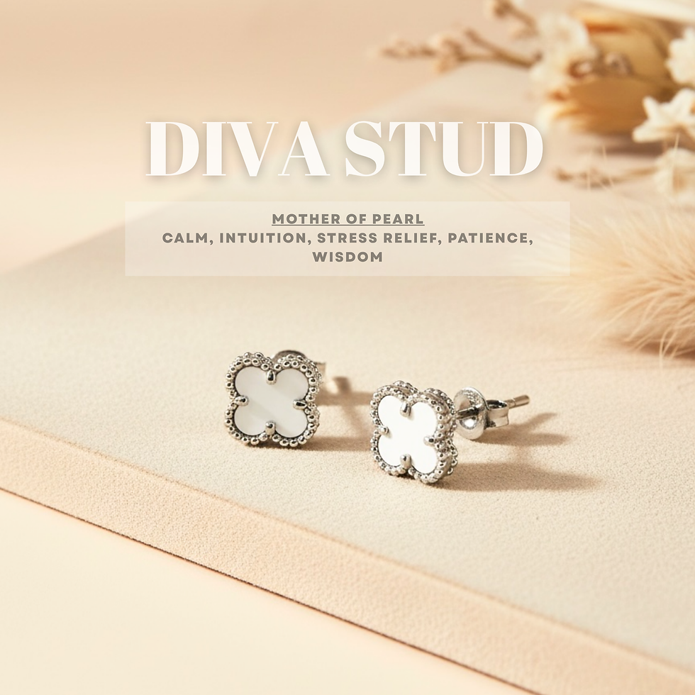 DIVA- Mother of Pearl Silver Clover Ear Studs